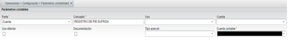 Para la correcta registración de las percepciones será necesario parametrizar la cuenta contable en la cual se desea que impacten las mismas desde la pantalla “Operaciones > Configuración > Parámetros contabilidad” de la siguiente manera: