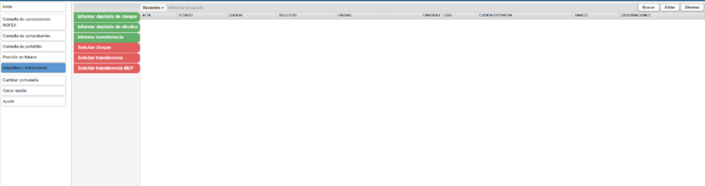 Los Agentes cuentan con la posibilidad de poner a disposición de sus comitentes una plataforma sencilla e intuitiva para que puedan visualizar los movimientos de su cartera, su posición actual, informes y comprobantes.